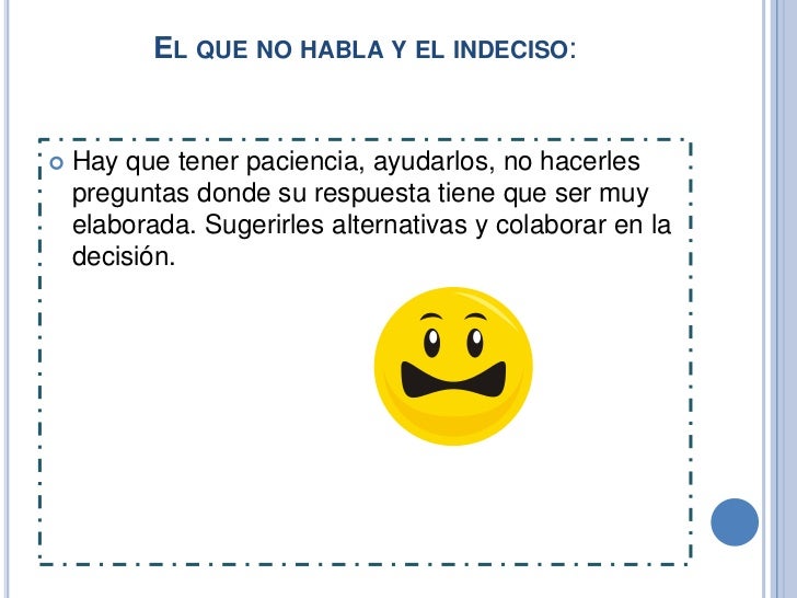 Hay que tener paciencia, ayudarlos, no hacerles preguntas donde su respuesta tiene que ser muy elaborada. Sugerirles alternativas y colaborar en la decisión.- Equivocado.
